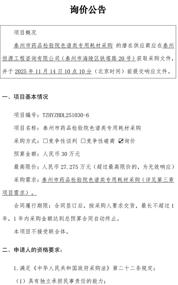 泰州市药品检验院色谱类专用耗材采购项目询价公告.pdf