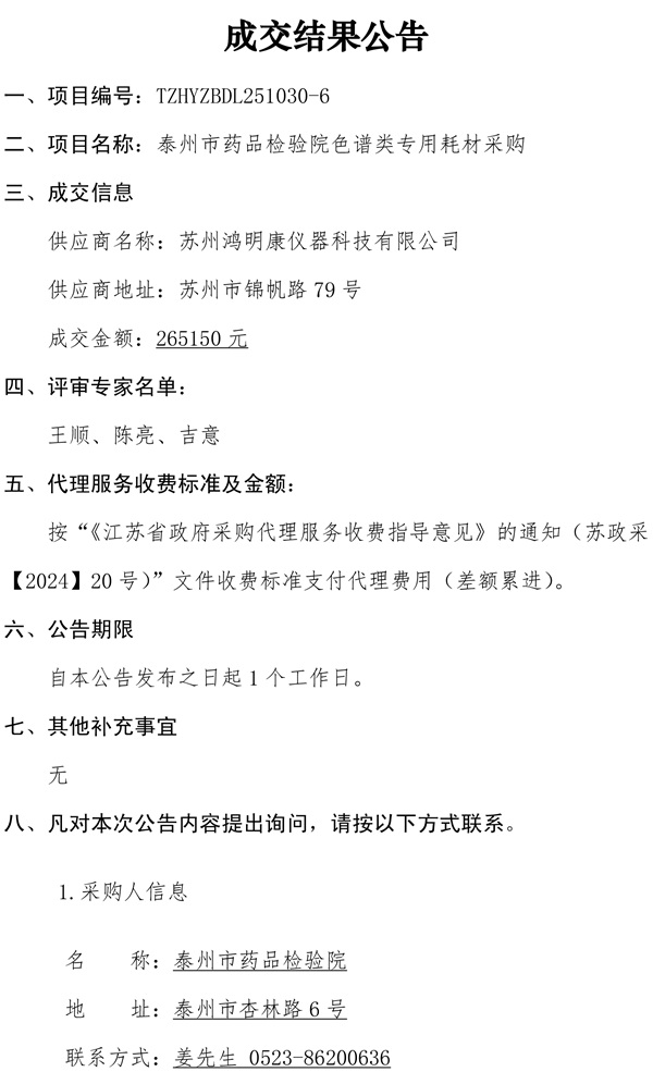 泰州市药品检验院色谱类专用耗材采购项目成交结果公告.pdf